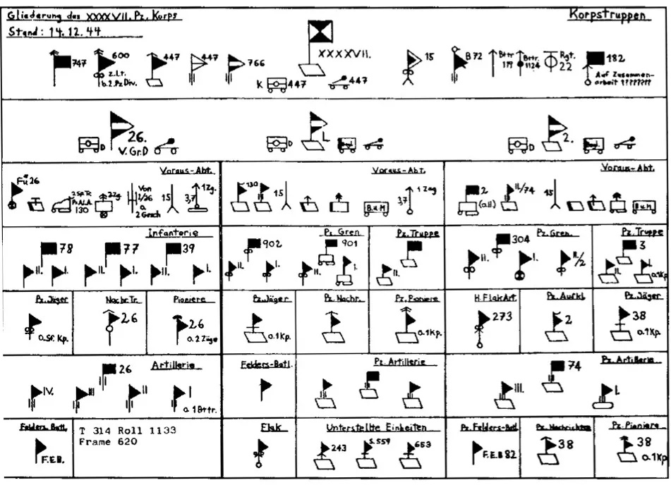 Here is the Gliederung for 47. PzKorps on 14 December: