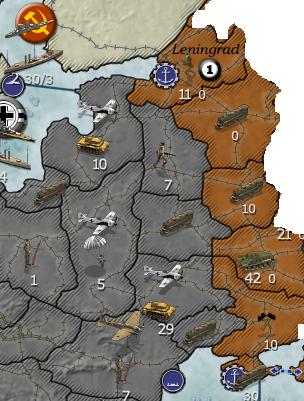 Last turn the Germans landed in Jordan with two INF while bringing a strong force, including 3 ARM to face Cairo from the West. 7 FTRs are also in range of London, though only three HBs are available to actually bomb anything.