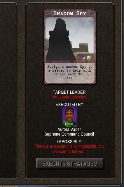 Yeah nice message lol. You have no target leader selected - see under target leader. Click the target tab at the top and select a leader or from a leader's profile page click the stratagem button.