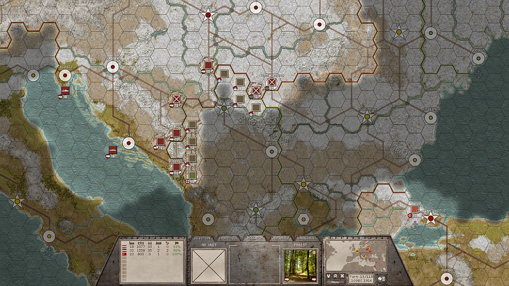 The Serbs make their move. No less than four Garrisons cross the Morava and push north toward Budapest and Temeschburg. I fail my first test of nerve - what a wuss I am