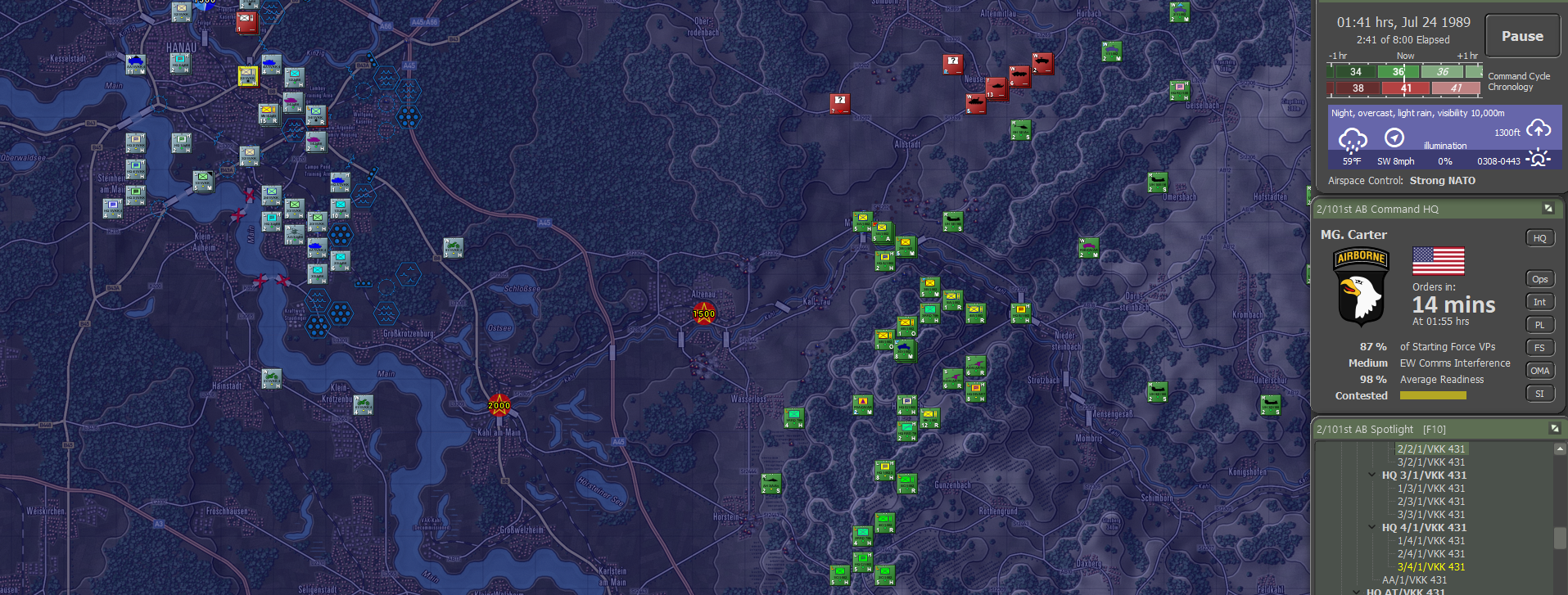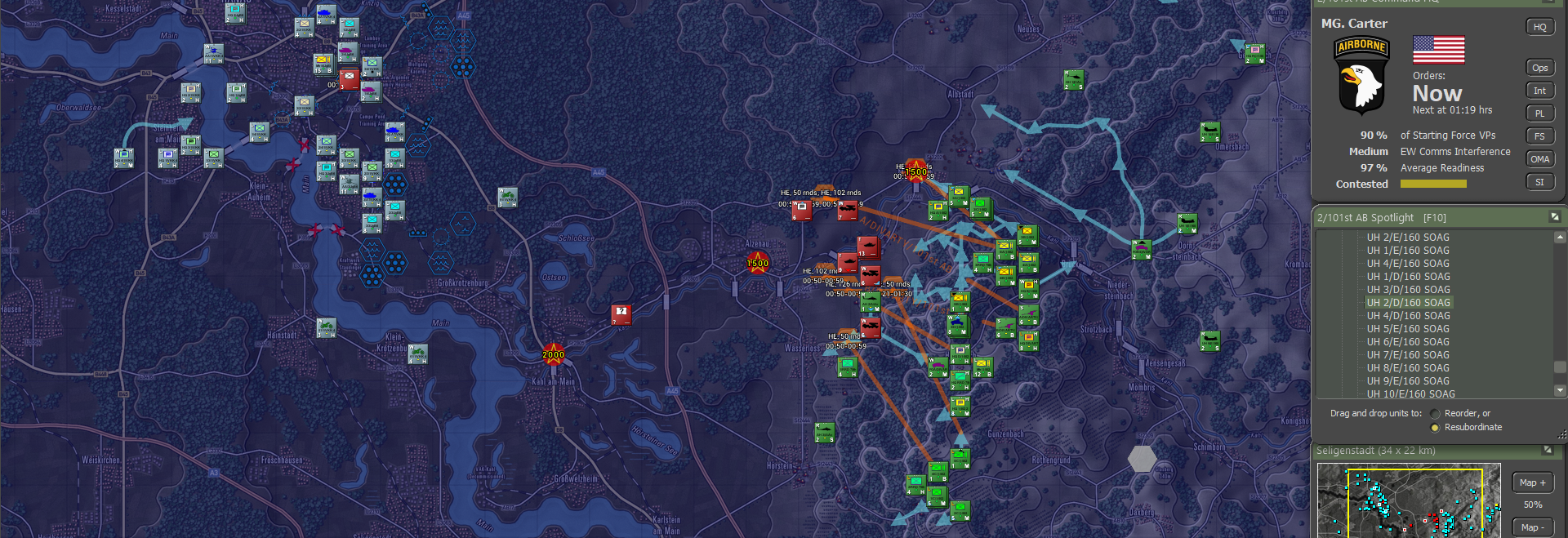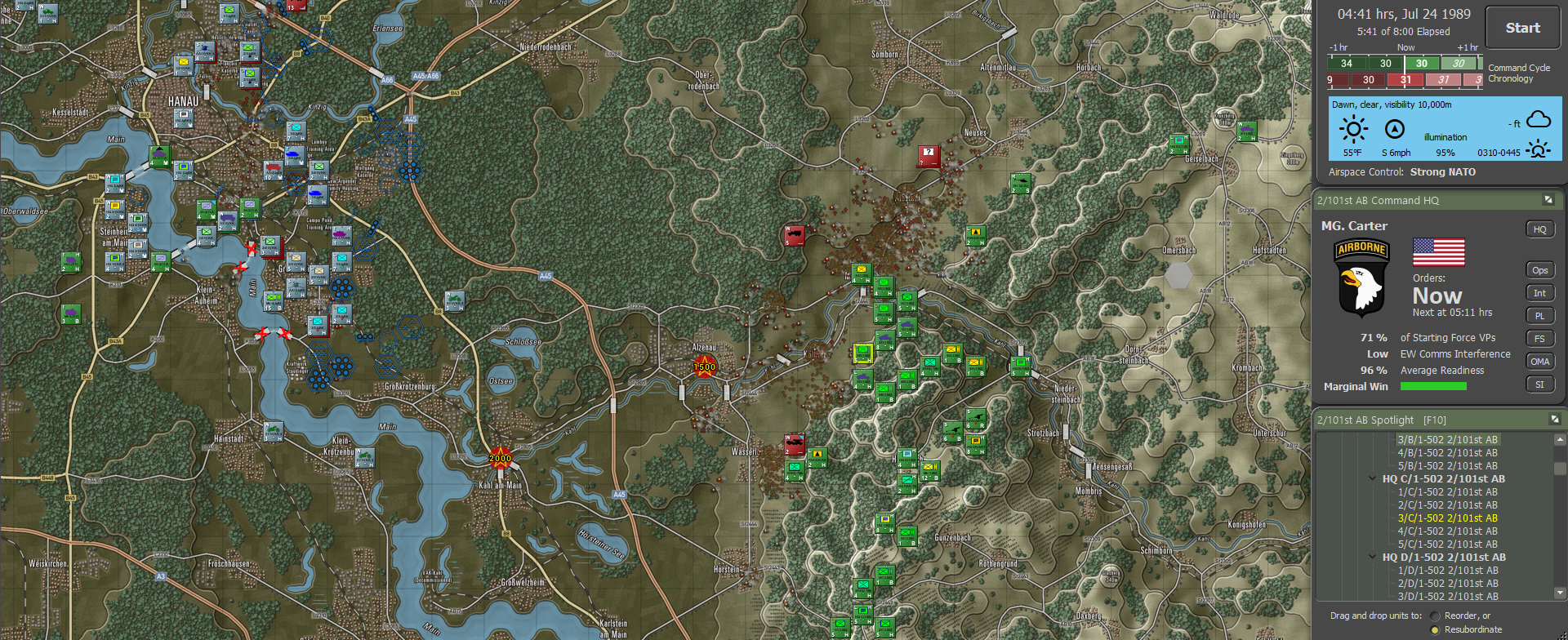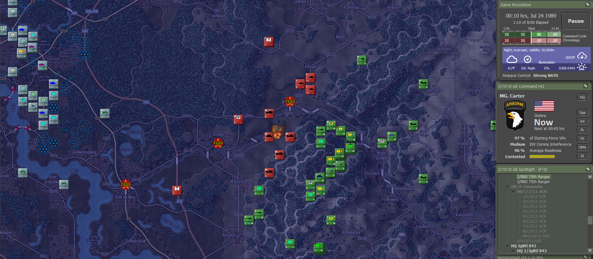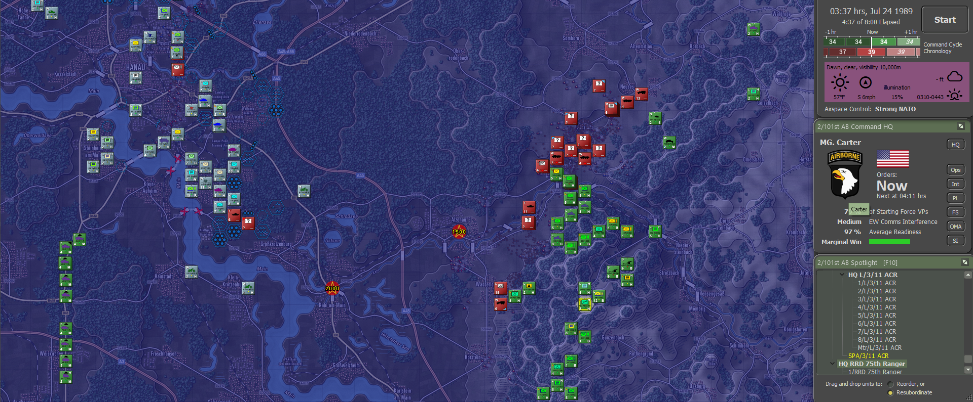 It turned out the Germans actually carried their fair share of the fighting, though this was not visible to the 101st. Between the two forces, including 56 Claims from the Apaches, 736 enemy sub-units had been accounted for, set against total sub-unit losses of 144. For NATO definitely not a gross result. And a brilliant day for the 101st!