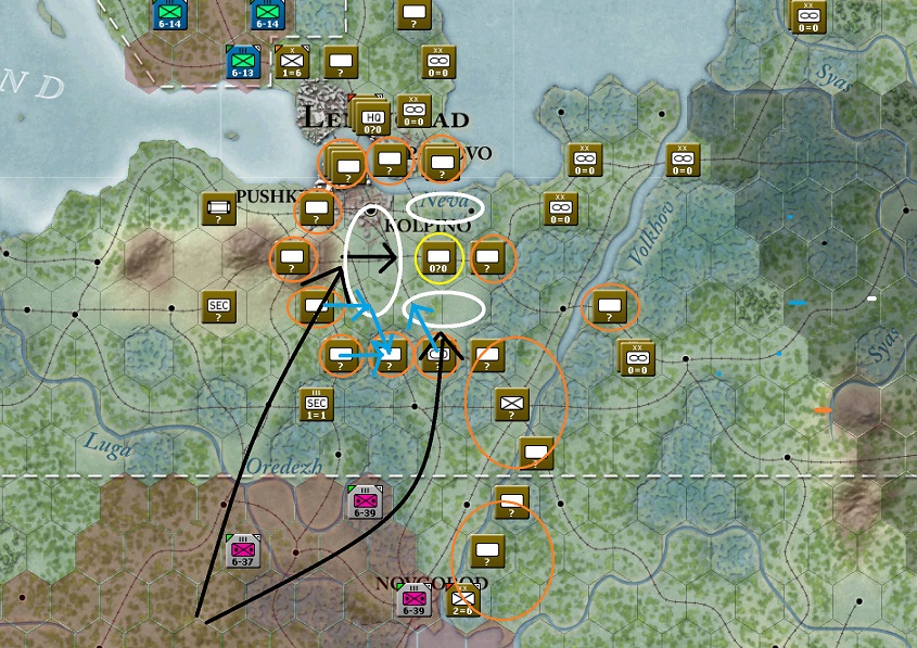 At Leningrad the beginning of the end is at hand and the next few turns will be getting into position then the death strike. I don't foresee this taking very long at all with ample time for other sectors.