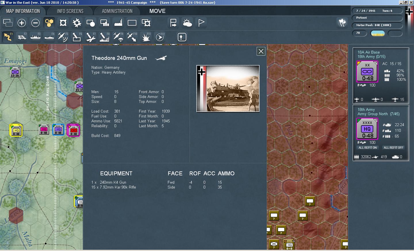 As 18th Army is assigned the task of capturing Leniningrad, I start using AP to send them the support units they will need to do the job: