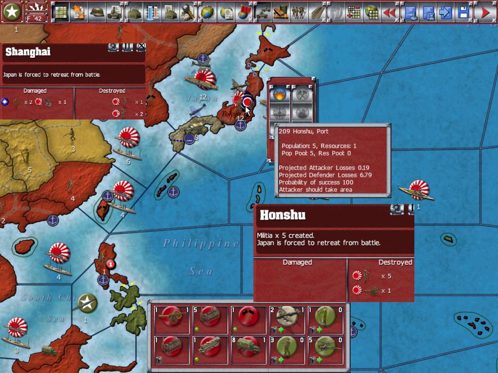 But if Lucky1 managed to put something back last turn, I am not ture I can take Honshu easily, don't forget there are already 5 militias.
